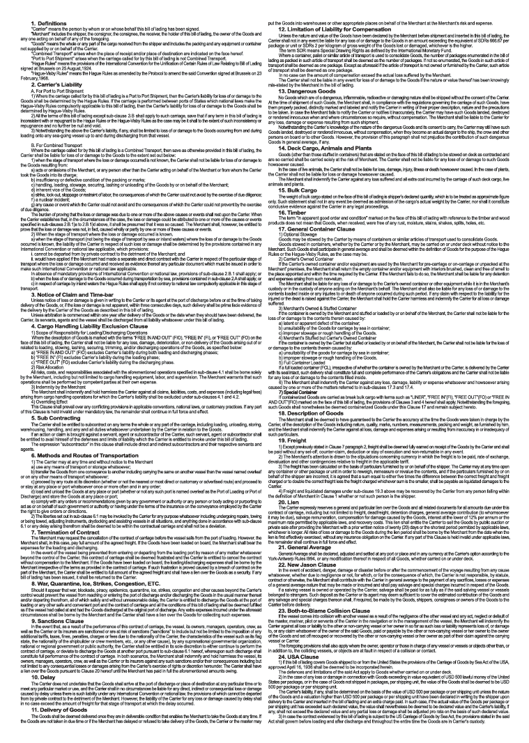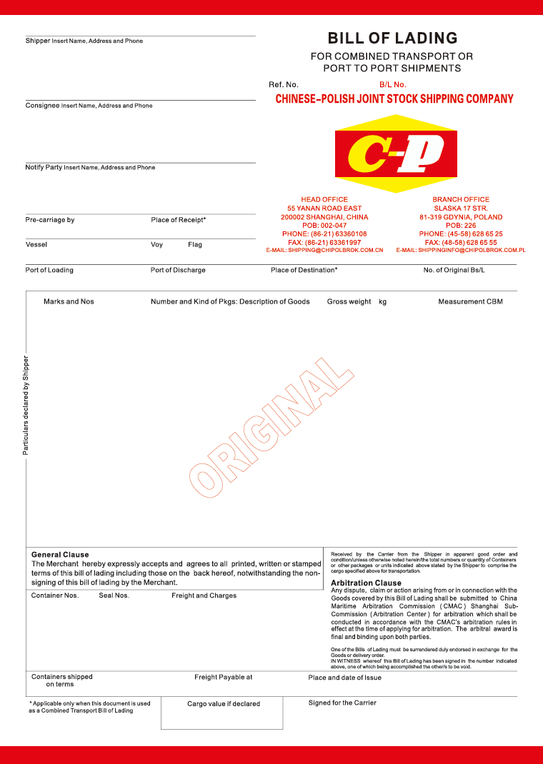 CHIPOLBROK & HONGFA SHIPPING Standard Terms and Conditions