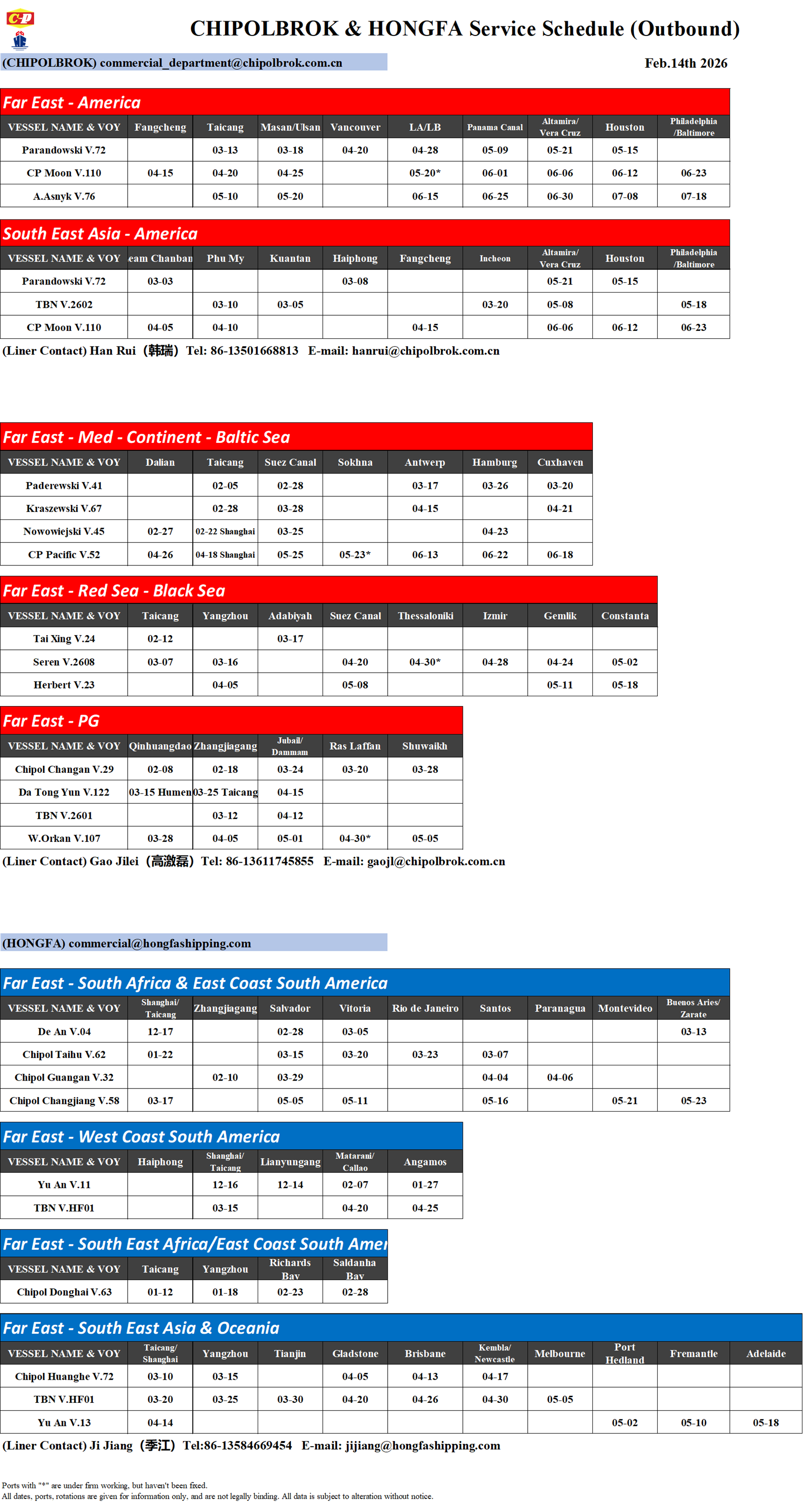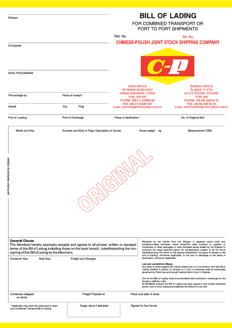 CHIPOLBROK & HONGFA SHIPPING Standard Terms and Conditions